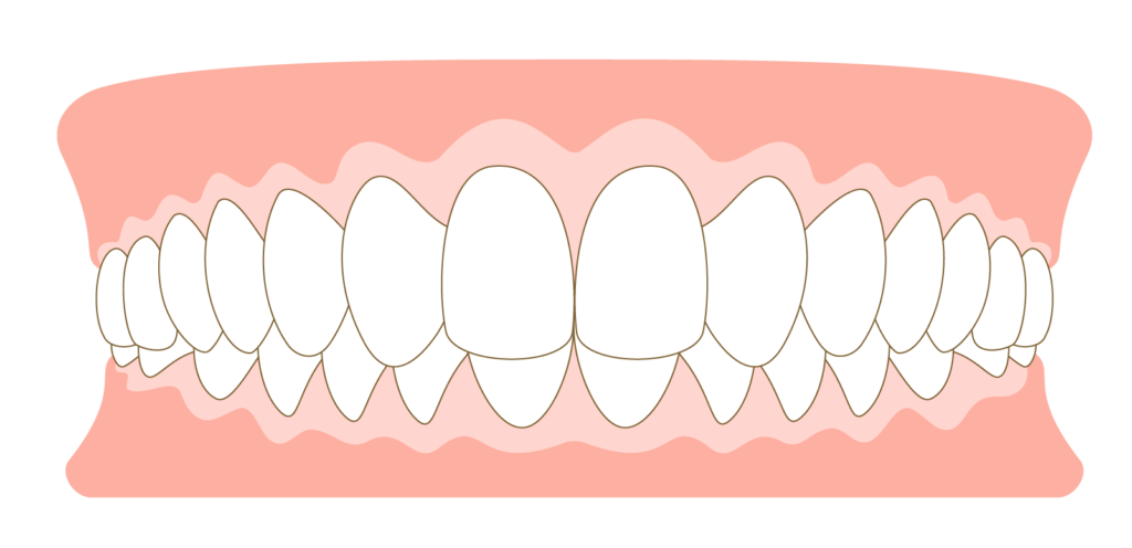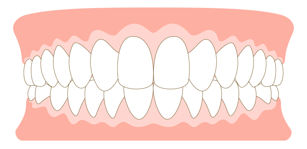 過蓋咬合とは深い噛み合わせのことで、不正歯列の一種です。下の歯に上の歯が覆いかぶさるほど深い噛み合わせで、奥歯で強く噛みしめてしまいます。また、噛み合わせのバランスが悪いとその部位を無意識に削ろうとして歯ぎしりする方もおられます。この場合は咬合調整や歯列矯正と共にボトックス治療で改善していきます。