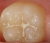 奥歯の溝は複雑な形をしているので、とてもムシ歯になりやすい箇所です。奥歯の溝をムシ歯に予防効果のある薬で塞ぎ、ムシ歯になりにくくする予防法がシーラントです。永久歯が萌出してきたら、この方法をお勧めしております。保険も適用可能ですので、ぜひご利用ください。