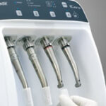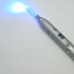 白い詰め物を固める為のライトです。当院では、ハイパワーの3秒で固まる照射器を導入しておりますので、短時間で白い詰め物の治療が可能です。お口を開いている時間も短くなり、患者様の負担も少なくなります。
