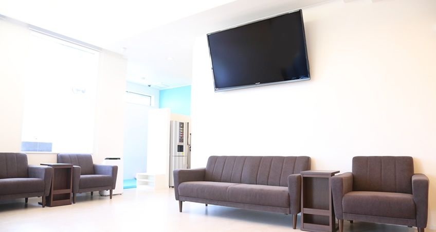 自然光が差し込み明るく開放的な待合室で、治療までの時間をリラックスしてお過ごし下さい。ドリンクサーバーも設置しておりますので、待ち時間も快適にお過ごし頂くことができます。また、お子様用のキッズルームもご用意しております。