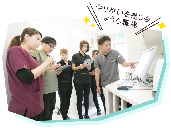 患者さんの笑顔のために、まずは働くスタッフが笑顔あふれる職場環境になる事を念頭に、お子さんがいるスタッフ含め、全員がやりがいを感じるように努めています。