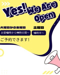 平日はお昼の12時から14時の間、土曜日は13時半〜もご予約可能です✨