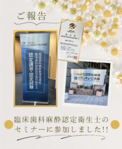 先日、『臨床歯科麻酔認定衛生士』の資格を取得しました。