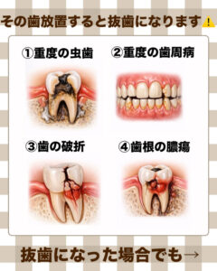 放置すると抜歯になるケース⚠️ 放置すると抜歯になるケース⚠️ 2026-03-19 kutsui こんにちは😃 岐阜県揖斐郡池田町の歯医者 くつい歯科クリニックです🦷 その歯、本当に大丈夫ですか?⚠️ 放置していると… 気づかないうちに抜歯になるケースもあります。 ✔ 虫歯が進行している ✔ 歯ぐきが腫れている ✔ 歯がグラグラしている 1つでも当てはまる方は要注意です。 でもご安心ください😊 万が一抜歯になっても、 インプラント治療でしっかり噛める状態に戻せます✨ インプラントは1本30万〜になります! 早めのご相談が大切です🦷 お気軽にお声掛けください😌